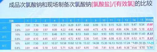 4.现场制备的时候,应控制好反应温度等条件,尽量降低次氯酸中氯酸盐的含量,犹豫现场制备次氯酸钠存放较短,建议氯酸盐/有效氯比值控制在5%以下。前提是我们做完就开始用。